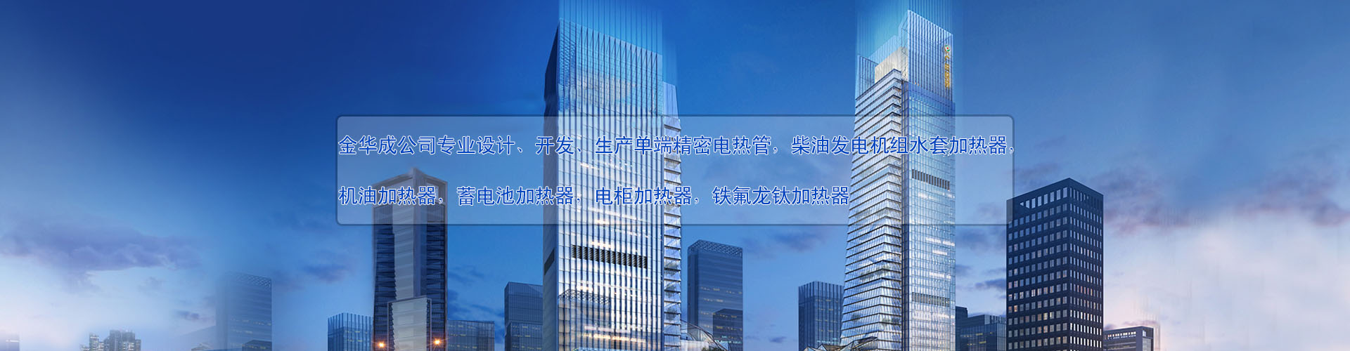 金华成公司专业设计、开发、生产单端精密电热管,柴油发电机组水套加热器,机油加热器,蓄电池加热器,电柜加热器,铁氟龙钛加热器,公司产品广泛用于模具,柴油发电机组,电控柜,机械电镀,化工,电子等行业。
